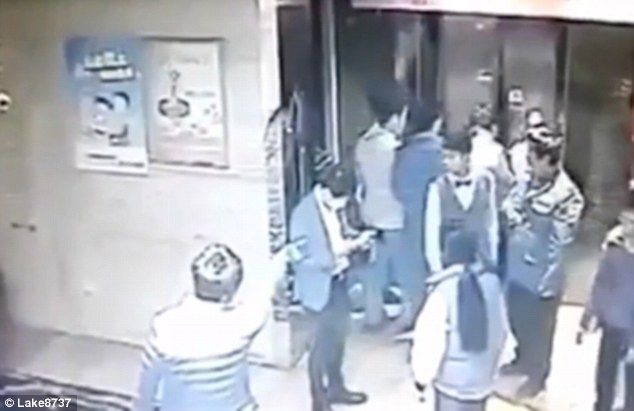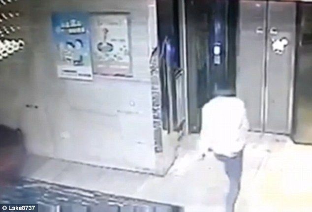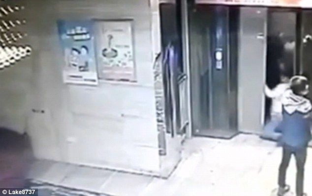 The shocking moment Chinese vandal breaks both his legs falling down lift shaft after kicking door in