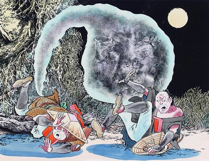 ところが二人共首を切り落としたもんでもちろん繋ぐ人間がおらんもんで、二人はそのまま死んで妖怪になってしまったんや