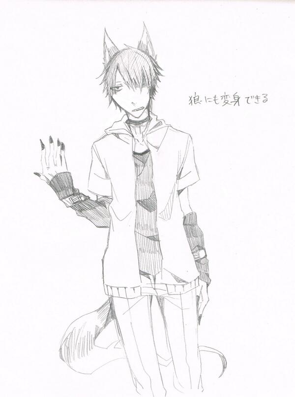 狼×2 月の満ち欠けで強さがかわる でかい爪 ケモ耳 目が白い 犬歯 チョーカー