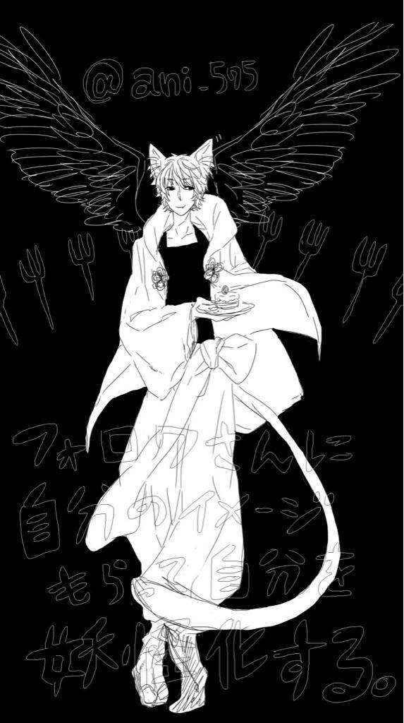 黒い羽/きつね/獣耳/着物的なもの/お面/人間好き