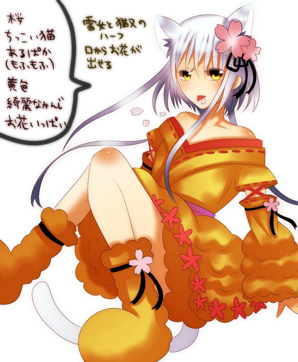 子狐/お花と戯れる/水面歩く/ふわふわ/着物/雪女/清楚/青い扇子か青い万華鏡/薄いピンク/髪はアイコンの色