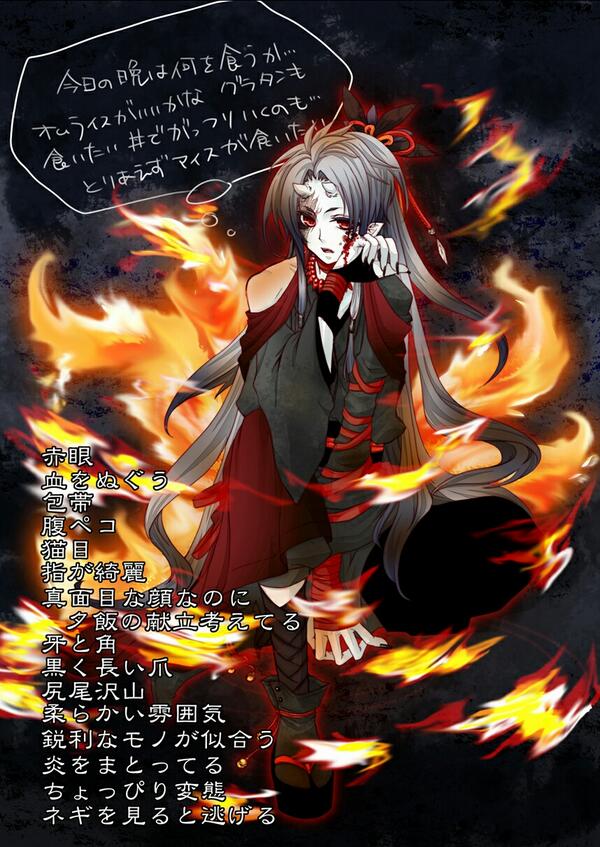 うまく描ききれませんでした_:(´ω`」∠):_ 変態とネギはこの子の設定って事で← 尻尾も炎にしたら訳分からなくなったよね…