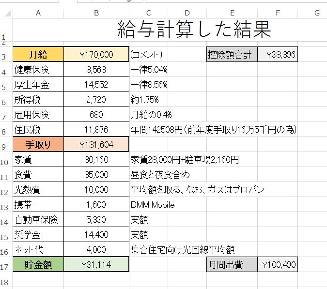 まだ働く前だからネットで調べて計算した結果だけど、たぶん大きく間違ってはないはず