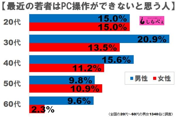 そこでしらべぇ編集部が全国の男女に最近の「若者はPC操作ができないと感じるか」聞いてみた。