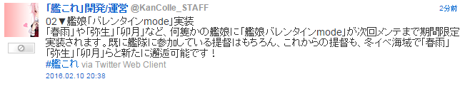 02▼艦娘「バレンタインmode」実装