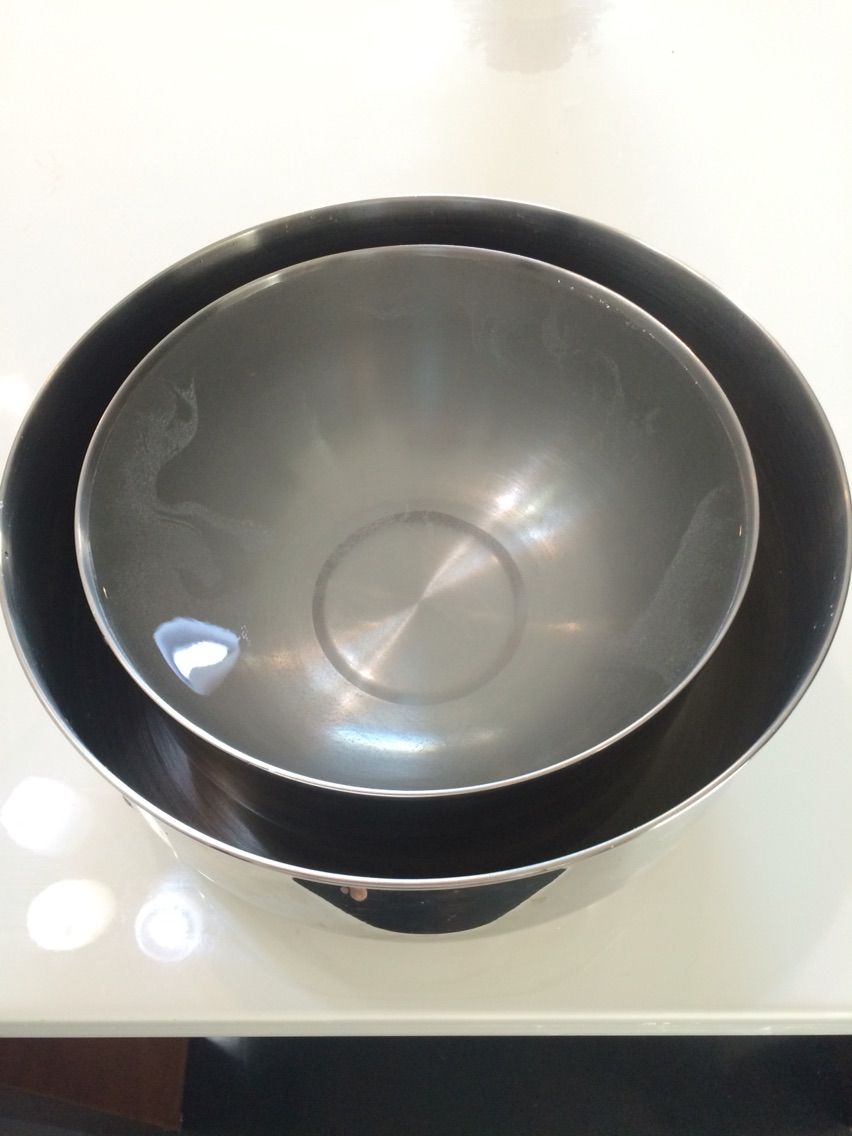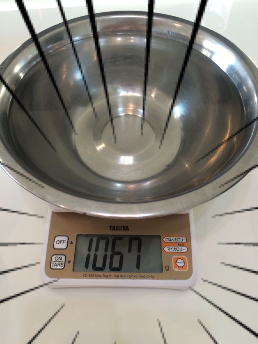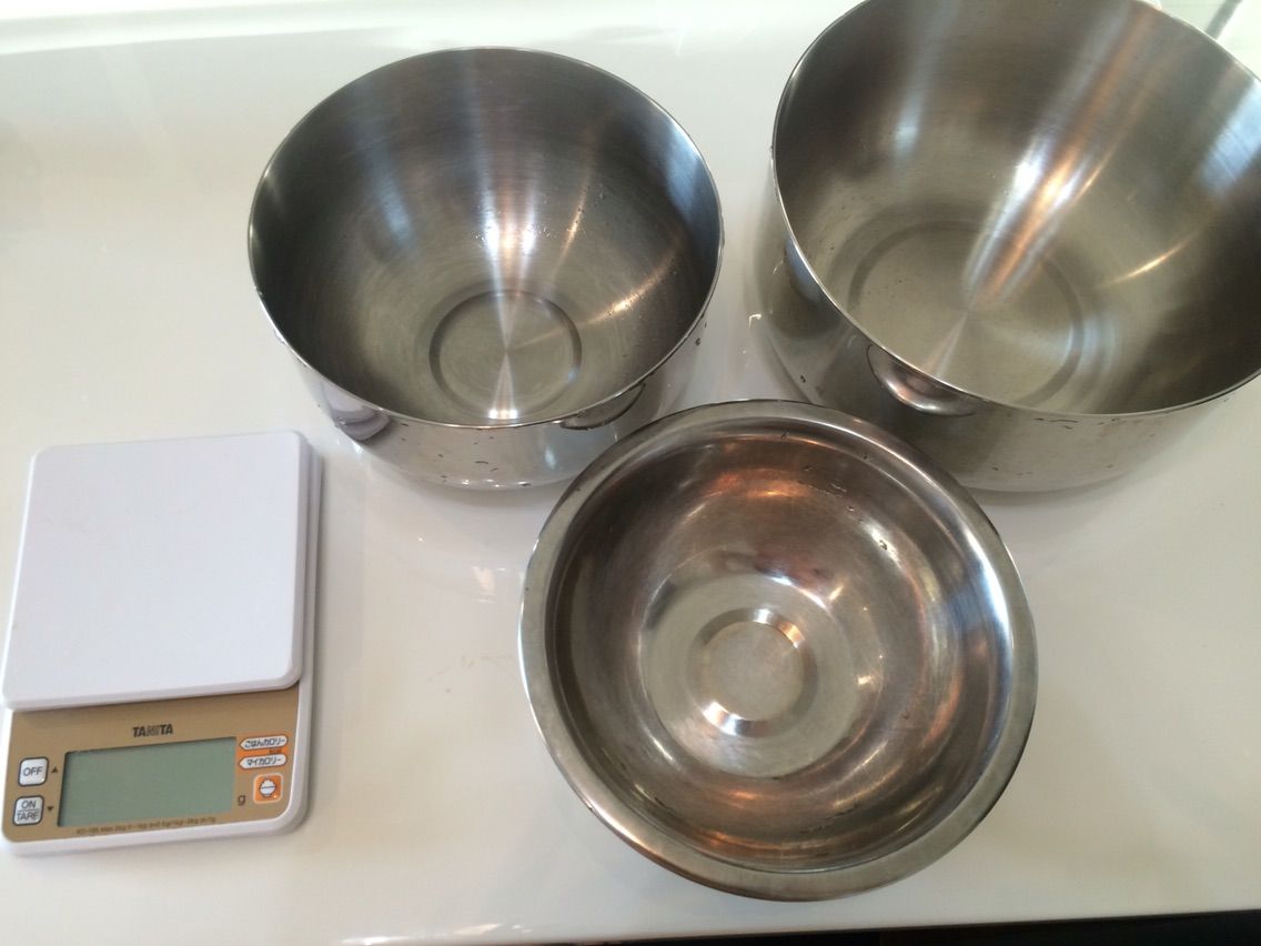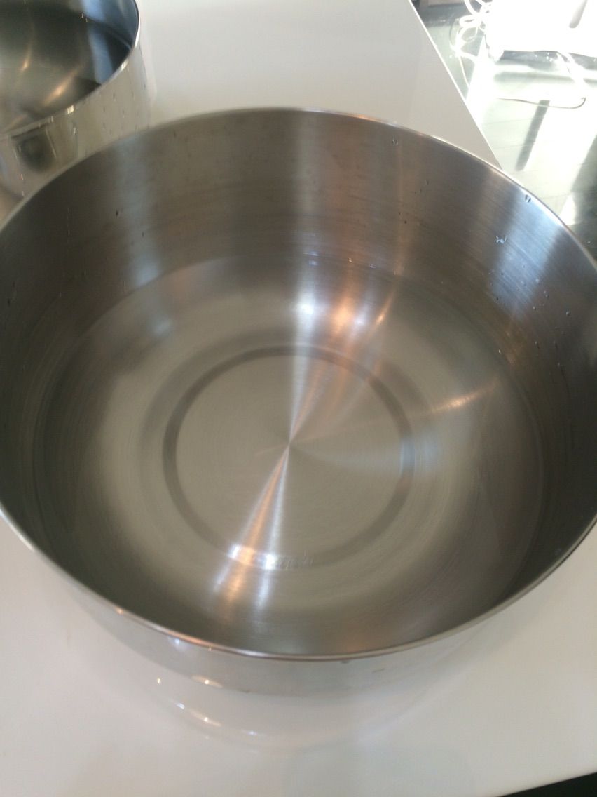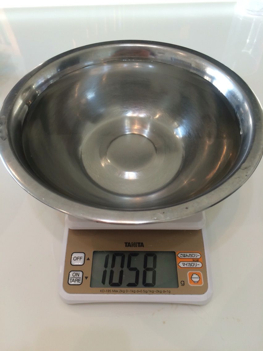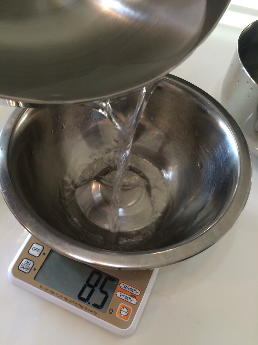 まず3のボールに2のボールを入れ、2のボールの中にこぼれる寸前までぬるま湯を入れます。