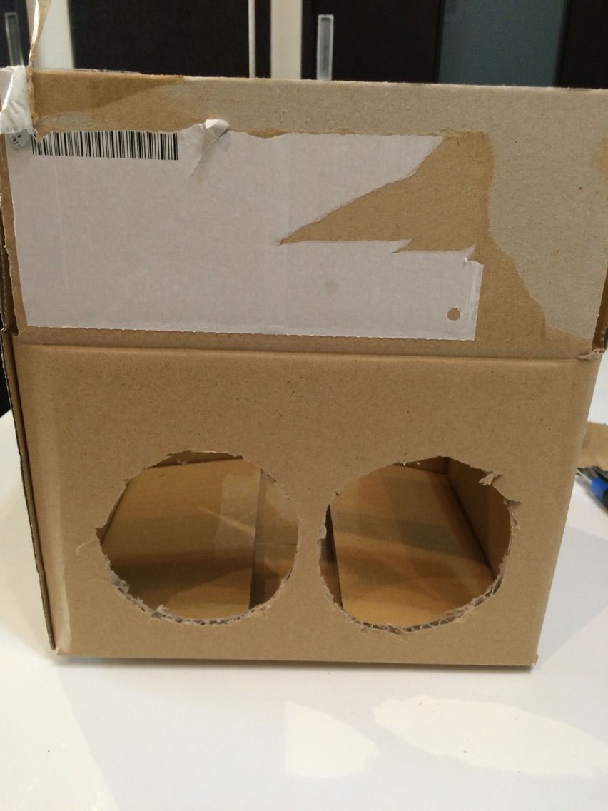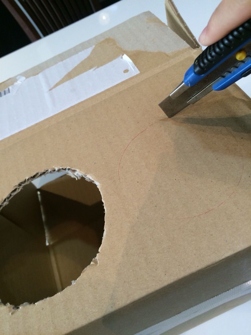 そしてダンボールに適度な穴を2つ開け、