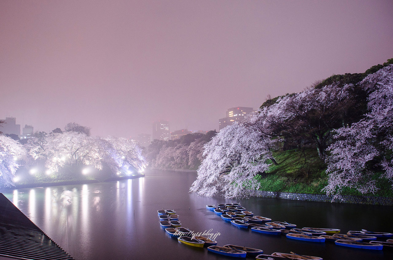 開花期間中に行われる千代田さくら祭りでは、夜になると千鳥ヶ淵緑道の桜がライトアップされ水面に桜が映し出されてたいへん情緒があります。