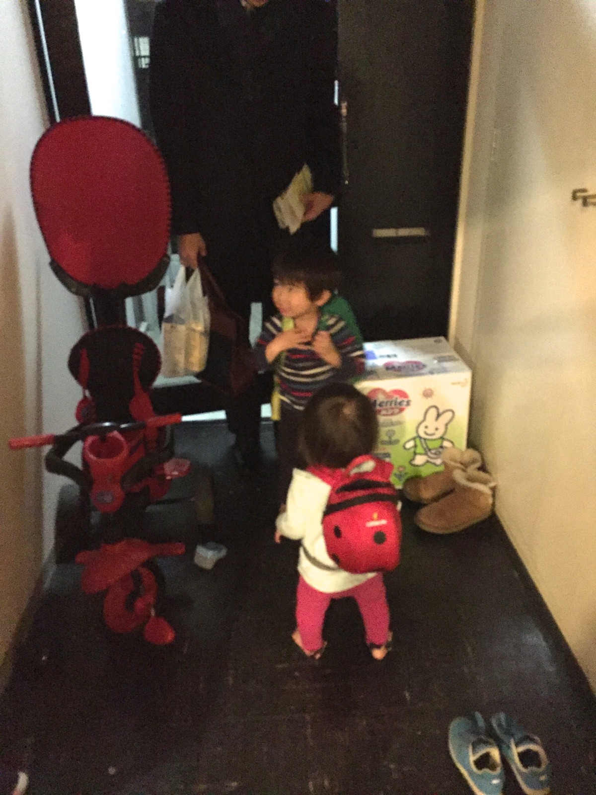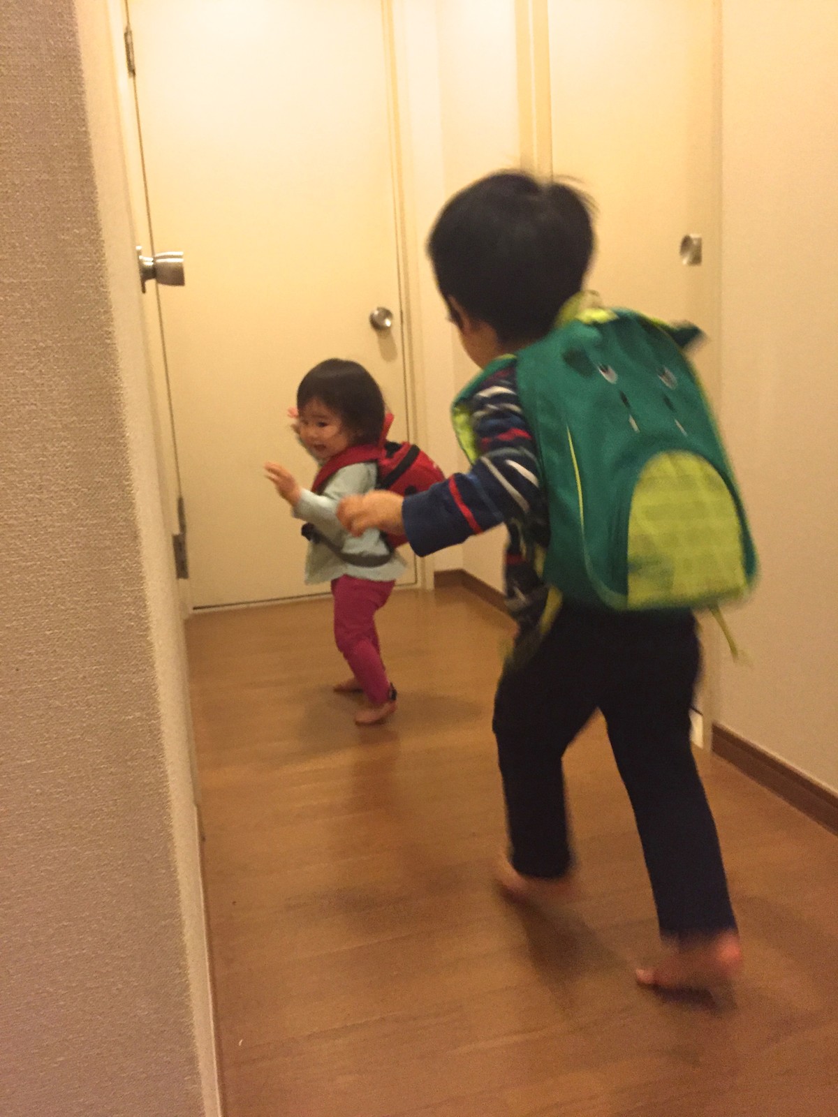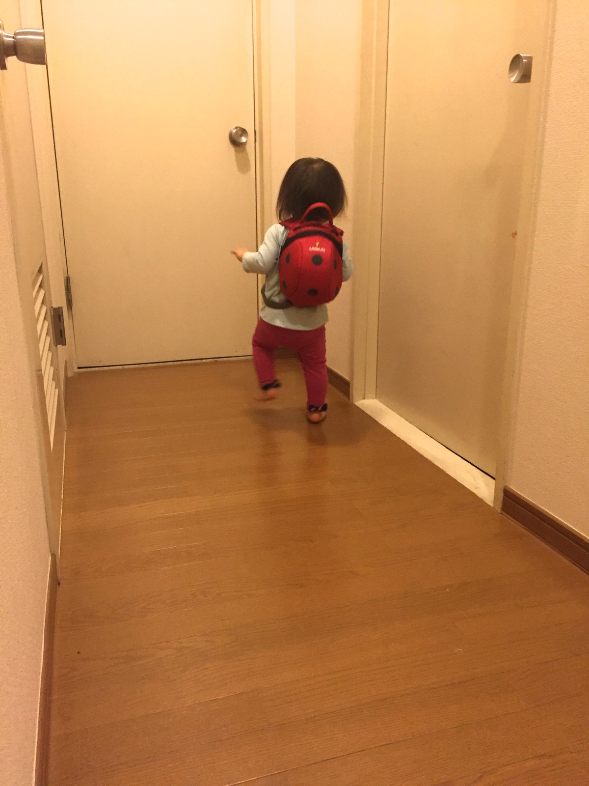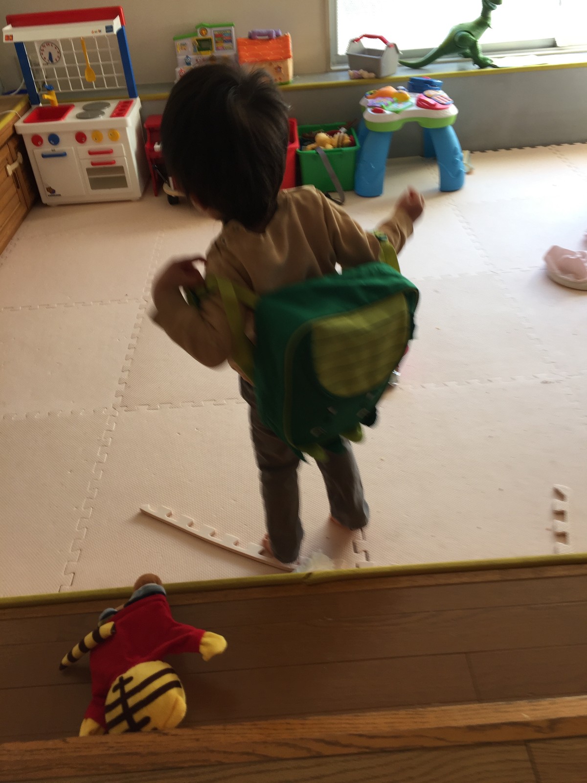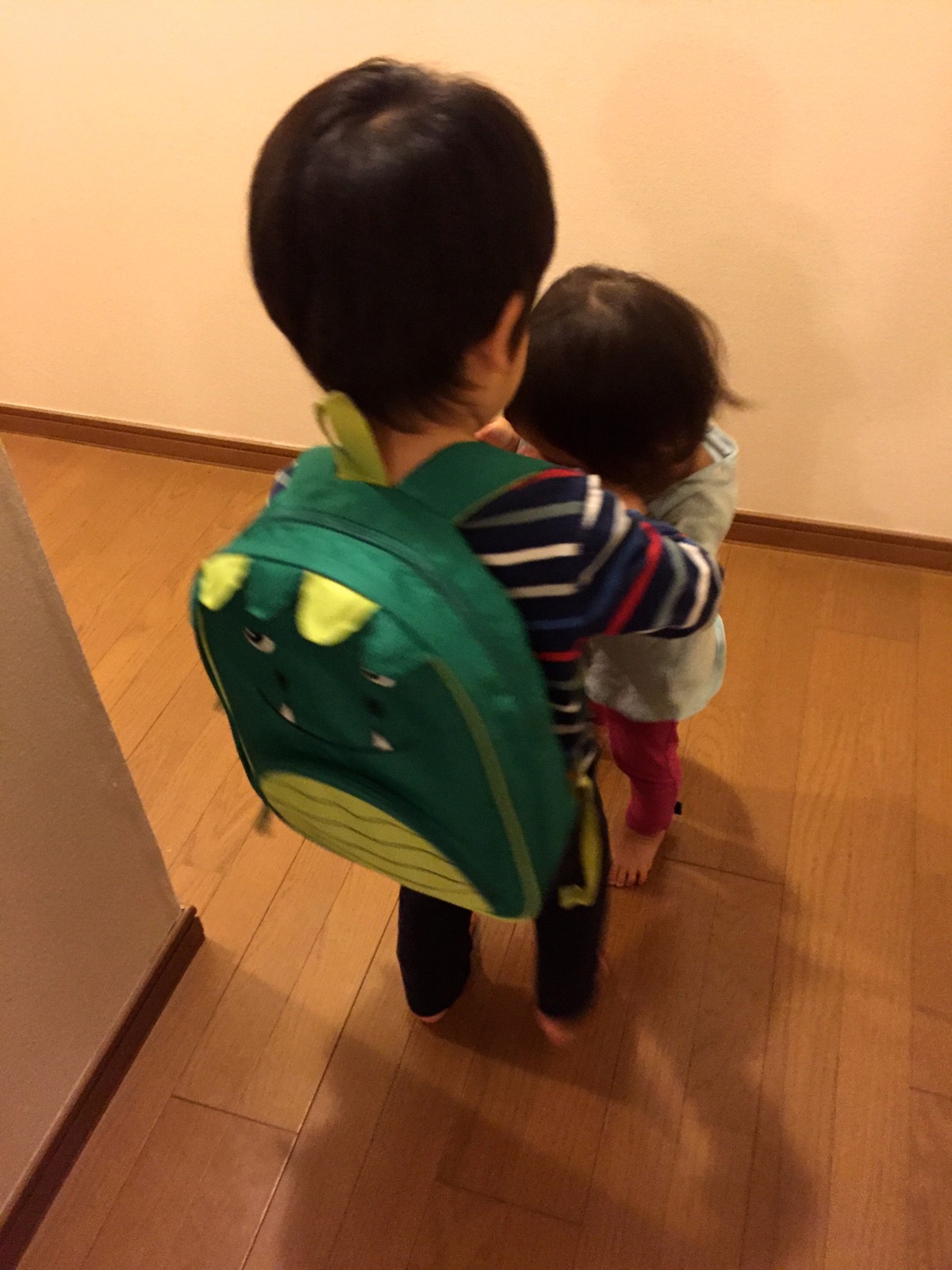 帰ってから、自分のテントウムシのリュックを