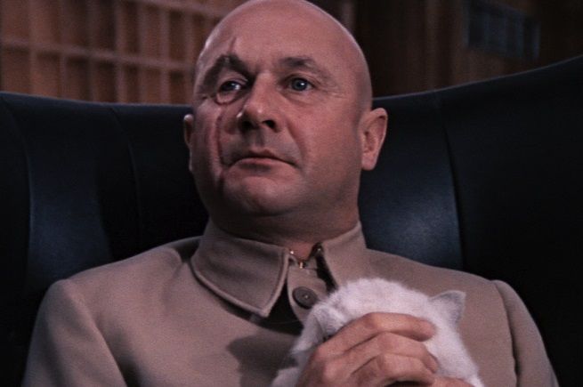 「スペクター」と聞いて心躍らせたあなた、007通ですね!そう、スペクターと言えば、ボンドの宿敵エルンスト・スタヴロ・ブロフェルドが率いる悪のシンジケート、”対諜報・テロ・復讐・恐喝のための特別機関(SPecial Executive for Counter-intelligence, Terrorism, Revenge and Extortion)”。ブロフェルドの姿は1962年公開の「007/ロシアより愛を込めて」や「サンダーボール作戦」では手や膝しか現れなかったものの、1967年に公開され浜美枝さんがボンドガールを務めた「007は二度死ぬ」で初めて全貌を明らかにしたことで知られていますよね。スキンヘッドに右目に走る縦の傷跡が印象的で、白いペルシャ猫がトレードマーク。おちゃらけスパイ映画「オースティン・パワーズ」シリーズでは、悪役ドクター・イーヴィルがその姿をパロディしていました。