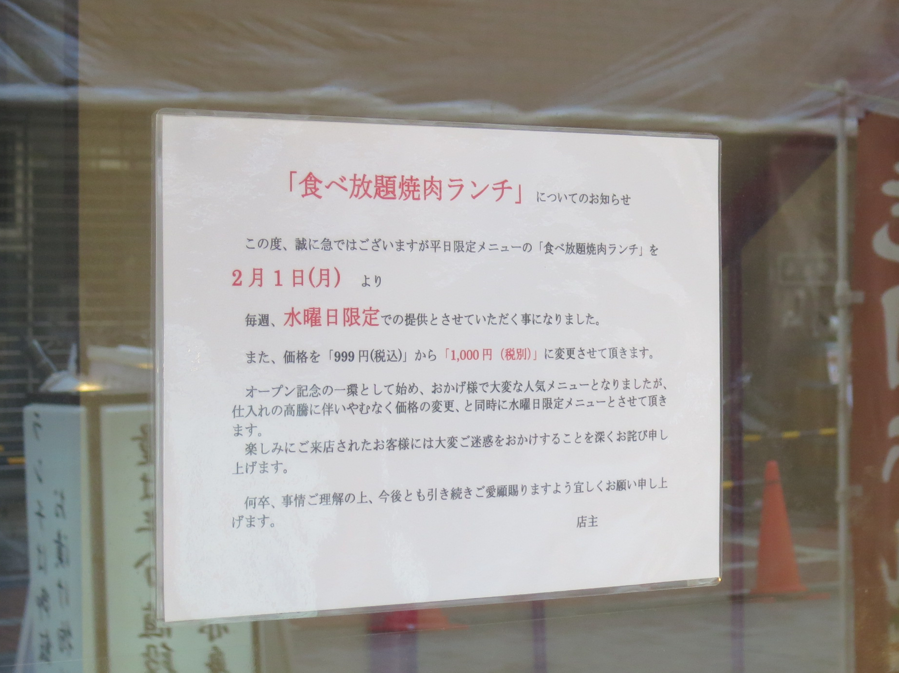 999円の食べ放題は続けられないですよね。