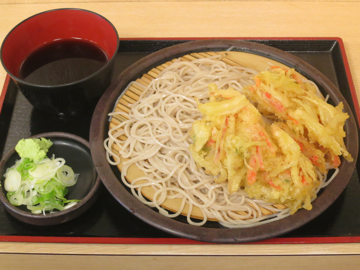 立って食べても全く問題ないのですが、せっかく椅子が空いているので、座って食べたかきあげセイロ420円。