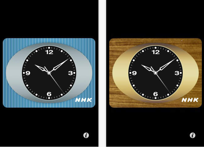 とてもシンプルなアプリで、NHKのテレビ放送でお馴染みのデザインと時報音を楽しめる時計だ。