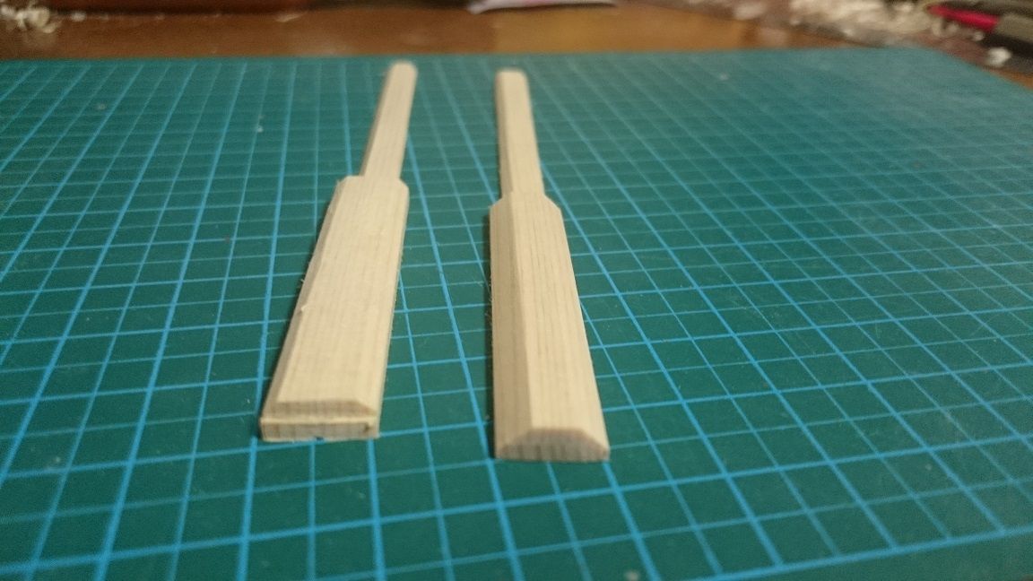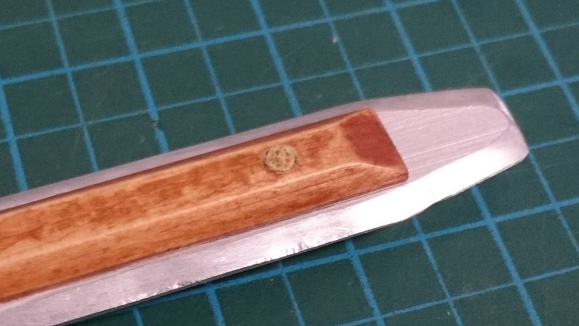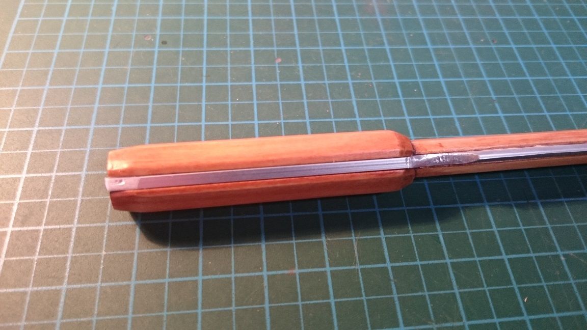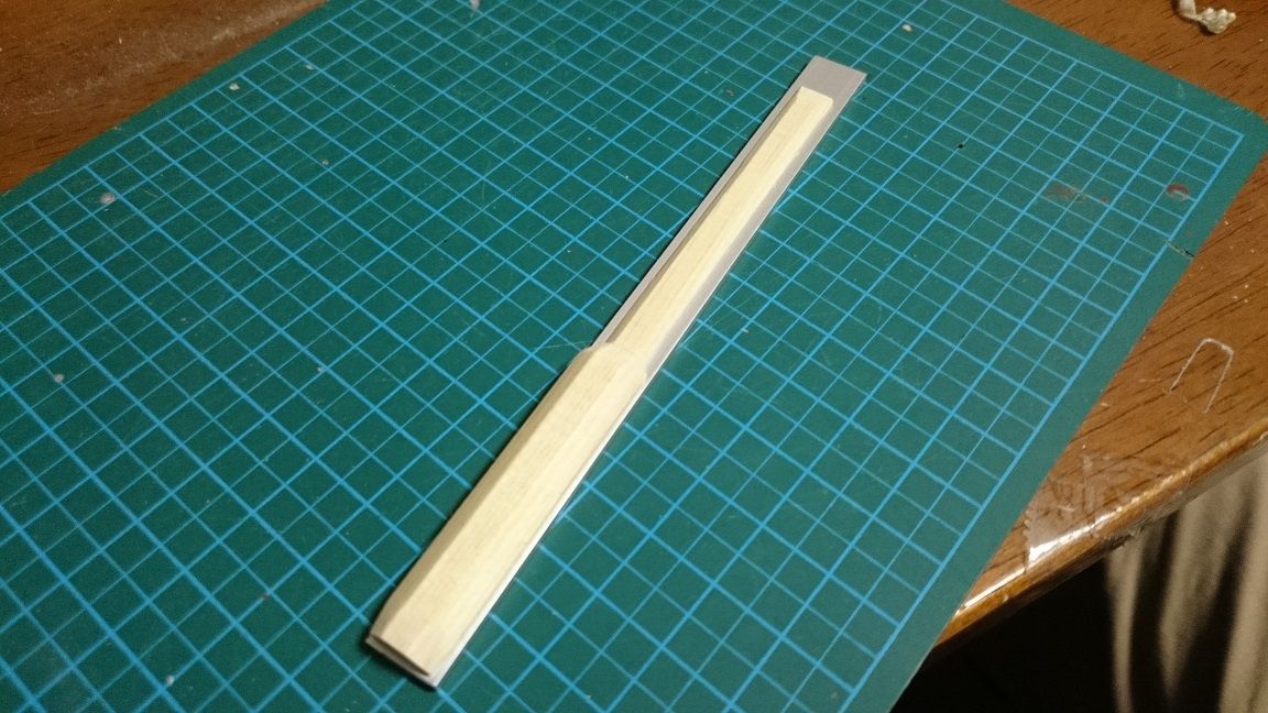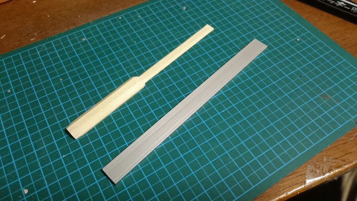 次に大小のパーツを張り合わせてグリップを正八角形になるよう削る。
