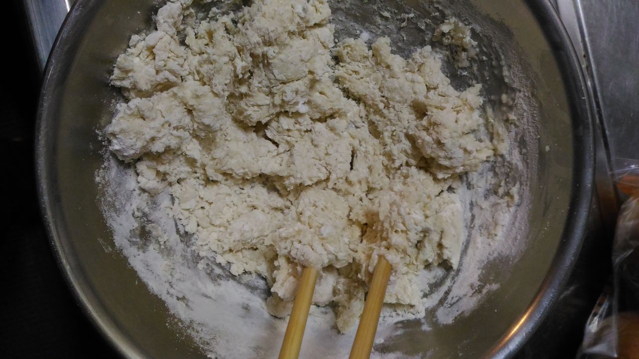 小麦粉は油断すると引っ付いてきますから。
