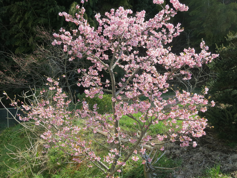自宅近くで早めに咲く桜、もう満開です。