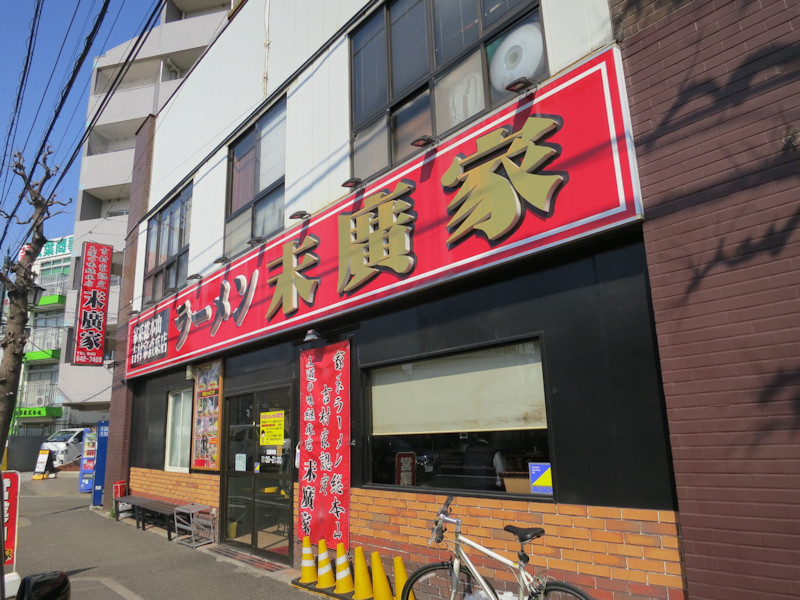 海老名、横浜と乗り換えて白楽で下車、やや下り坂の商店街を抜け、大通りを右手に登っていくと、ラーメン末廣家@白楽(横浜市神奈川区六角橋)。