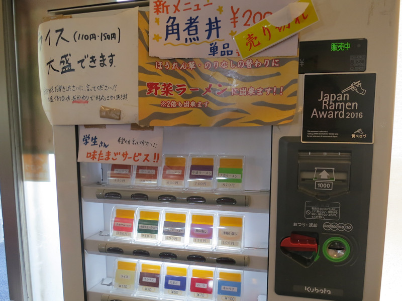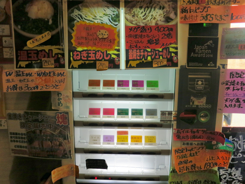 券売機で買える食券はラーメンとチャーシューメン、並盛、中盛、大盛のみで醤油とか塩とか、つけ麺とか一切ありません。