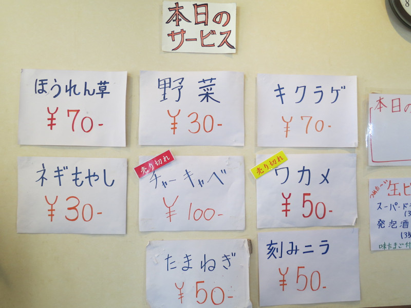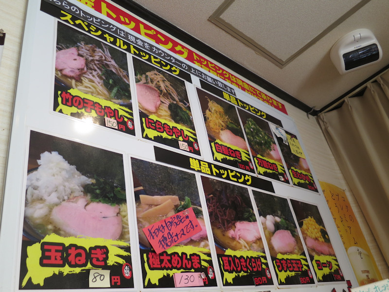 100円以下のトッピングが壁に張り出されています。