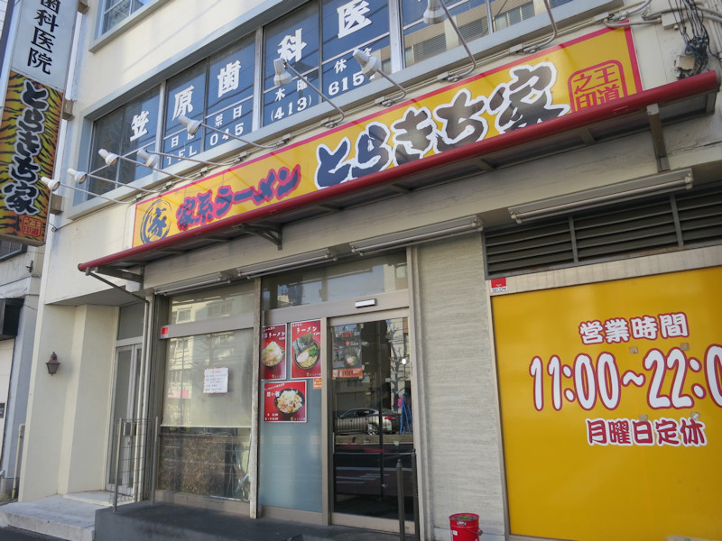 六角橋の家系ラーメン発祥店と言われる(?)六角家本店の二軒隣に、ラーメン末廣家の開店から遅れること半年の2014/1/24にオープンしたとらきち家@東白楽(横浜市神奈川区西神奈川)(ホームページ)。
