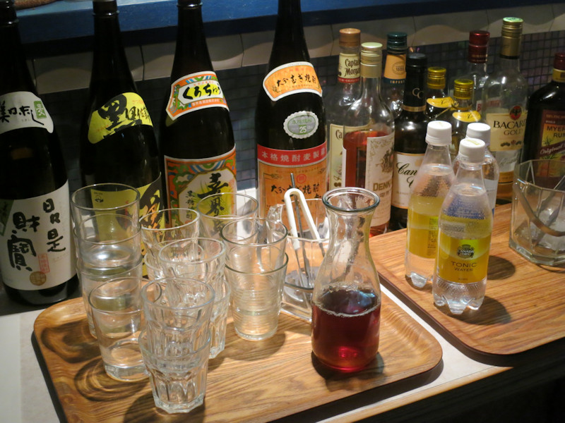 宴会コースは飲み放題で生ビール(キリン一番搾り、キリンスタウト(黒)、ハーフ&ハーフ)、焼酎、ウィスキー、ウォッカ、ワイン(赤、白、ロゼ)、もちろんソフトドリンクも用意されています。