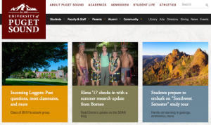 Pugetsound.edu:この3つの特集記事はどれも下に「さらに詳しく」や「続きを読む」というリンクがない。その代わりに、たとえば、「Class of 2019 Facebook group(:2019年度のクラスのフェイスブックグループ)」や「Read Elena’s updates on the SOAN blog(:社会学&文化人類学部のブログでElenaの更新情報を読もう)」といった説明的なリンクを入れ、クリックすると何が出てくるかを明らかにしている。