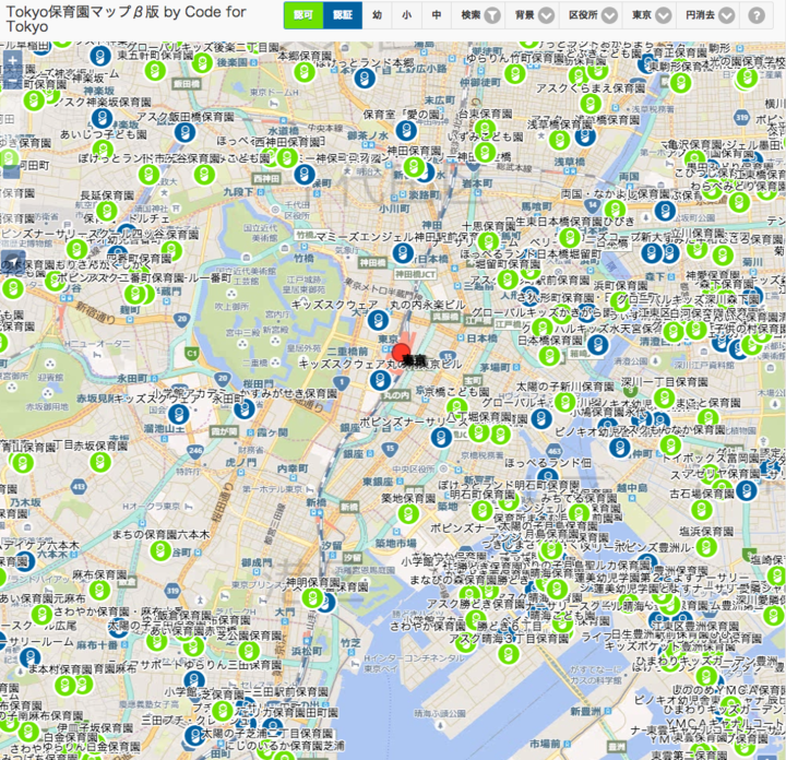 東京23区の保育園マップは、Code for Tokyo (コード・フォー・トウキョウ)がつくった。