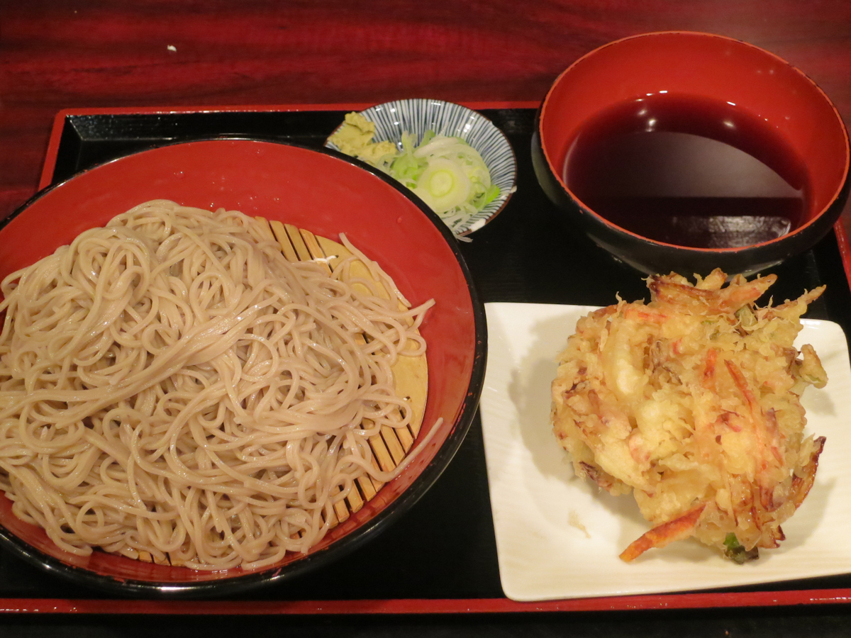 天ぷらせいろ430円、かき揚げから揚げたての油の香りが漂ってきます。