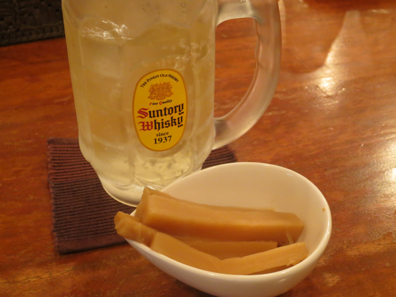 ハイボール350円を店主さんのご好意で頂いたメンマをアテに、今夜は町田で一人お疲れ様会。