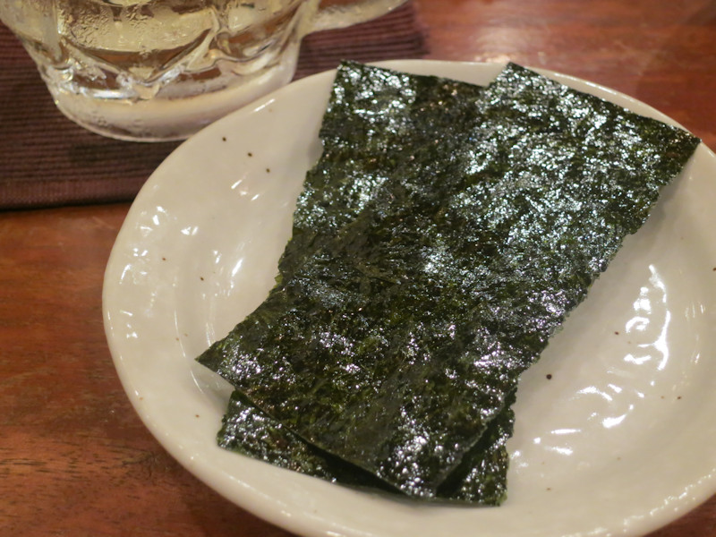 閉店時間まで余裕があったのでハイボールをお代わりすると、店主さんのご好意で味付け海苔を頂きました。