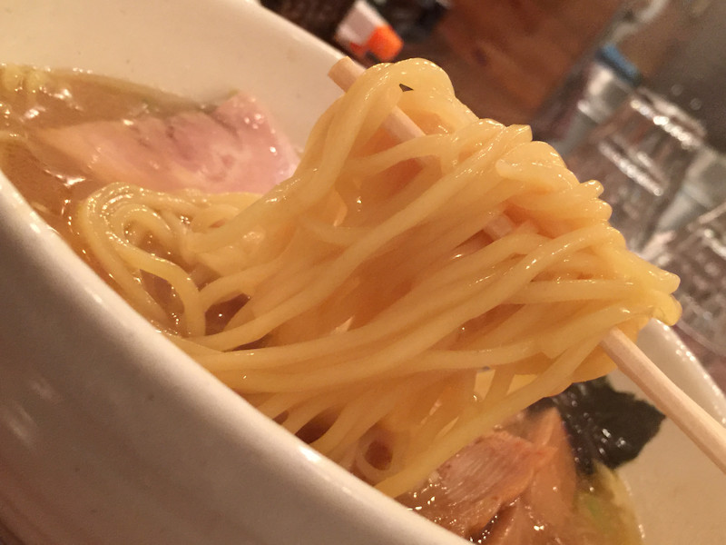 豚骨と魚介(昆布)とモミジのダブルスープ、今夜は以前にも増して濃く感じたので、天候を意識してのことかと尋ねると、そうではなくて、月曜日は濃くなりがちなのだとか。