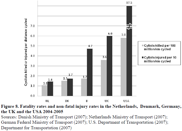 出 典:Pucher, J., Buehler, R. 2008. “Making Cycling Irresistible: Lessons from the Netherlands, Denmark, and Germany,” Transport Reviews, Vol. 28, No. 4, 2008, pp. 495-528.(pdf)