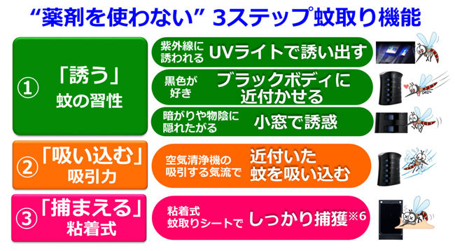 >蚊の習性を利用し、本体にUVライトを搭載したほか、本体色にはブラックを採用