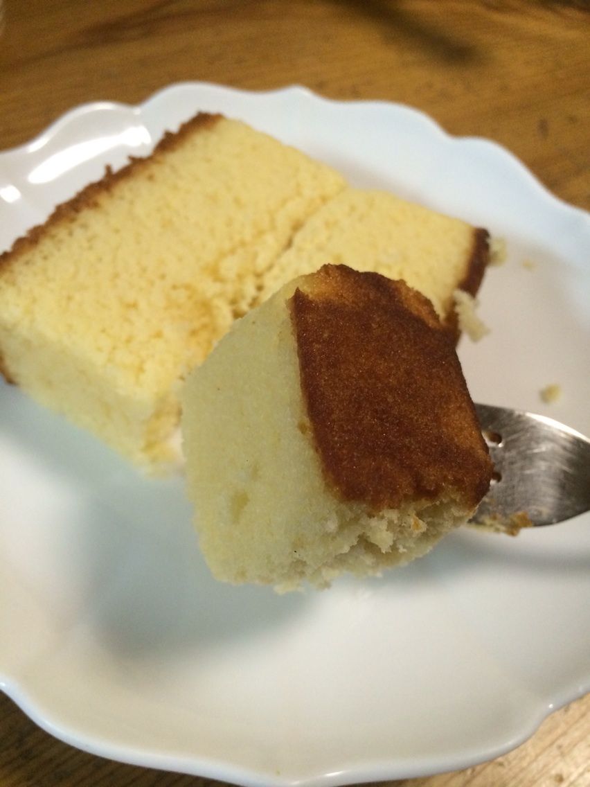 見た目は普通のカステラ。なんですが、この時点でパインアメの香ばしい香りが辺りを漂っております。これはパインアメ好きはたまらないと思います。香りを楽しみ過ぎて、しばらく食べないんじゃないかなというくらいには、パインアメの香りがします。