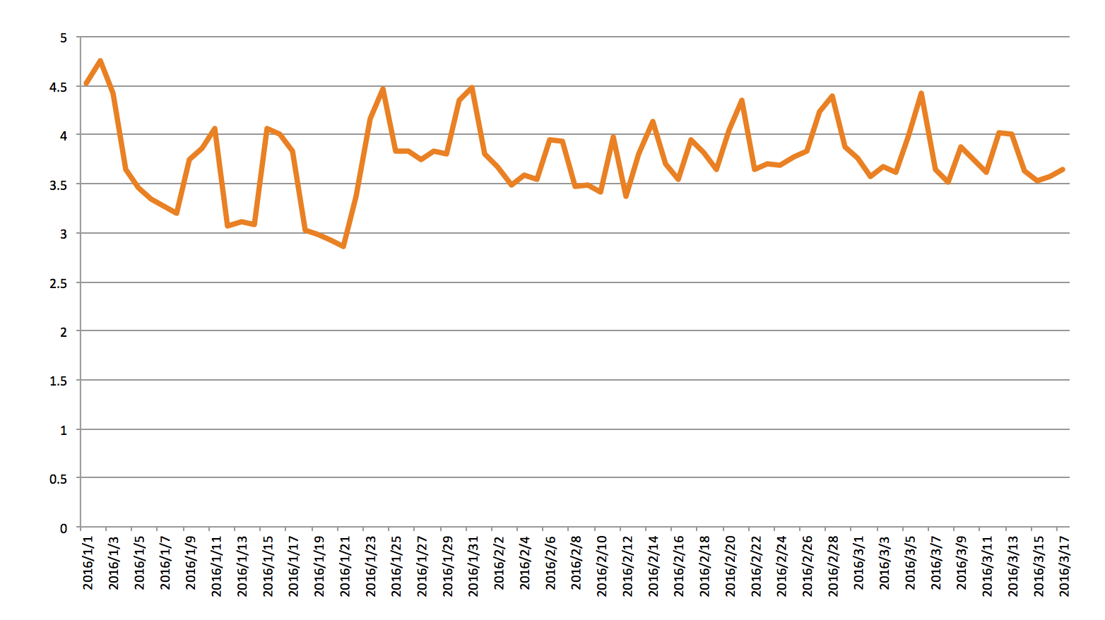 1月〜3月はクラッシュ率の低減とスマート入力の利用率の向上にフォーカスした為、チュートリアルなど他の改善点の施策が出来ていませんが、3ヶ月間の成果としてデイリーのアクティブユーザーが以下の様に改善しました。なんと2015年のアクティブユーザー数に対して、240%ほど増える結果となりました。ただこのグラフの急激な数値の上がり方を見ると、単に今まで離れていたユーザーが戻ってきてくれただけとの見方も出来るので、今後の施策と結果を見ていく必要があります。