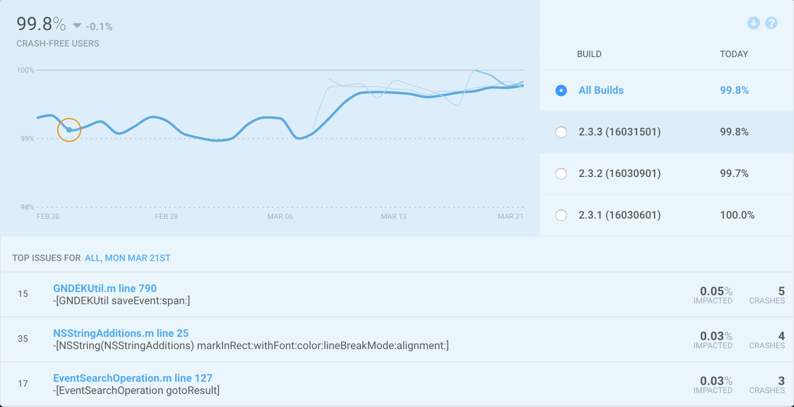 - クラッシュフリー率:99.9%