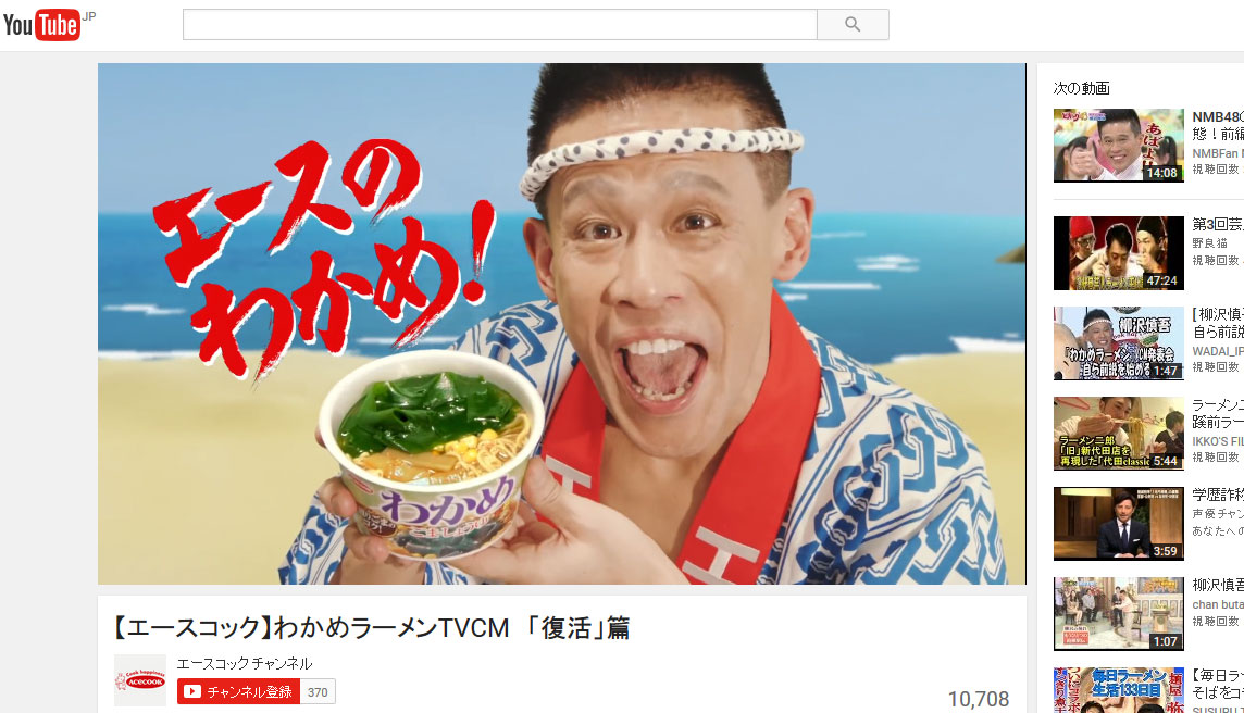 (【エースコック】わかめラーメンTVCM 「復活」篇 - YouTube)
