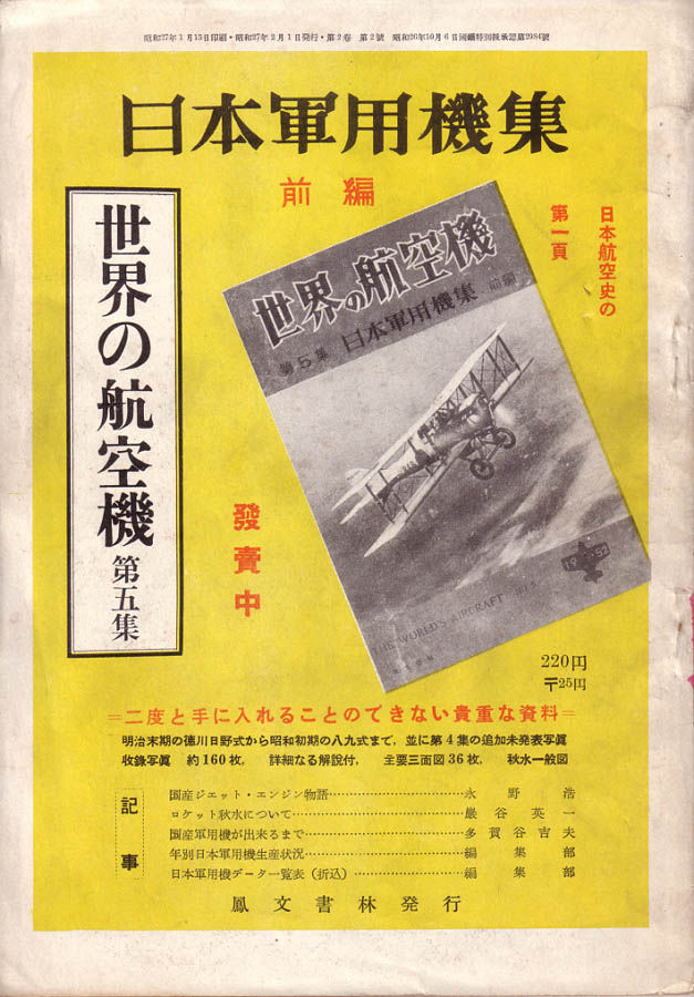 鳳文書林発行「世界の航空」1952年2月号。当時の価格は90円。