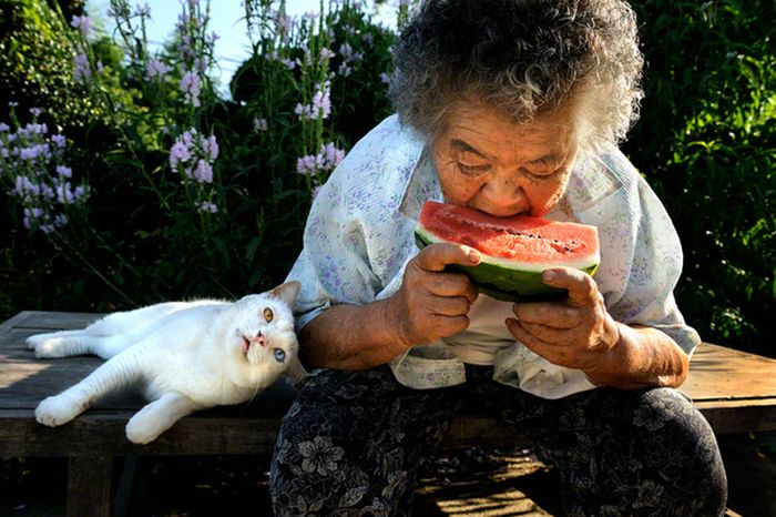 諸国反応記 本当に仲良さそうな♫「日本のお婆ちゃんとニャンコ」画像への海外の反応