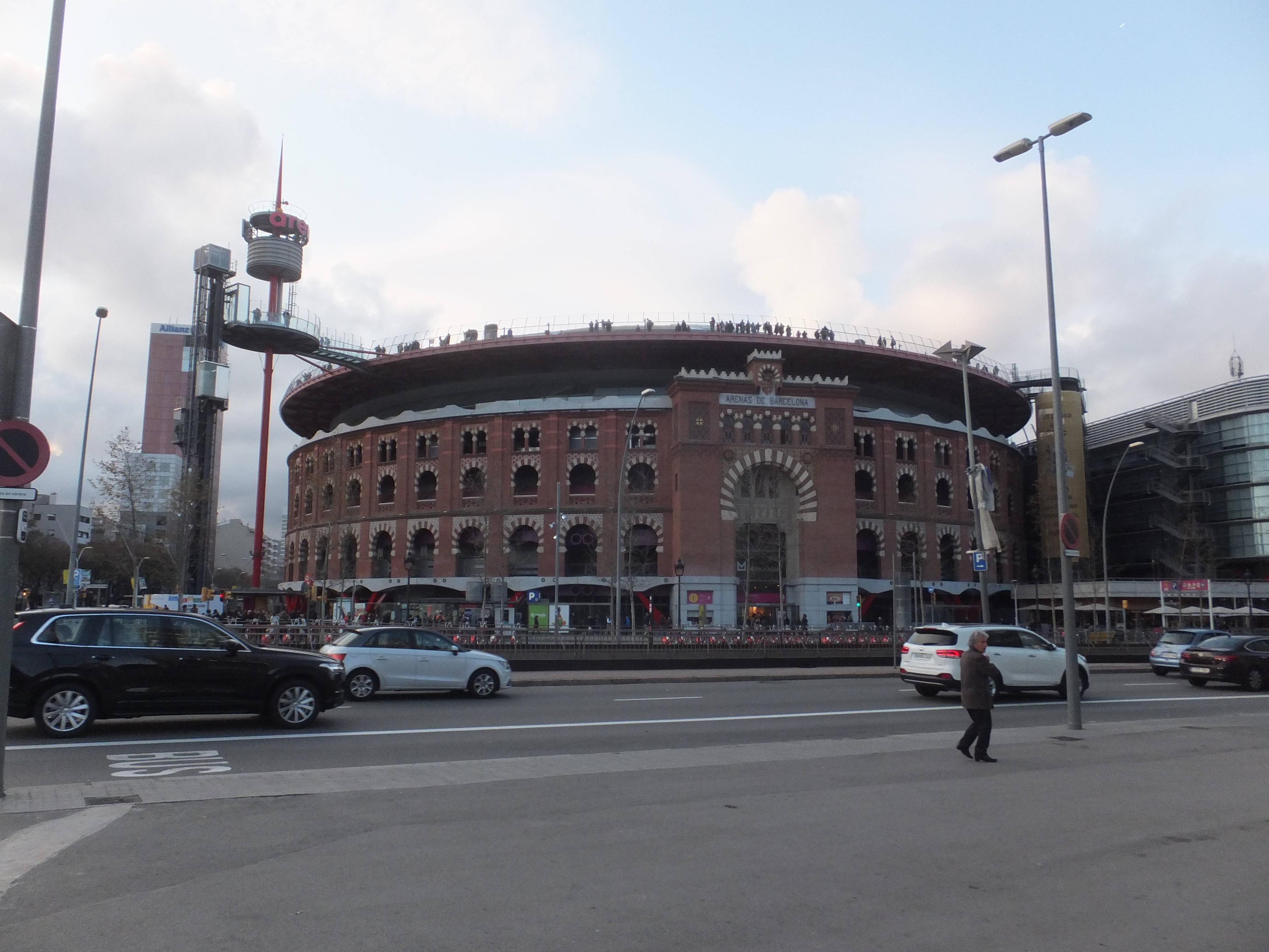カタルーニャ州では闘牛が禁止になったから壊す予定が反対の声もあったんで、ショッピングセンターになった。