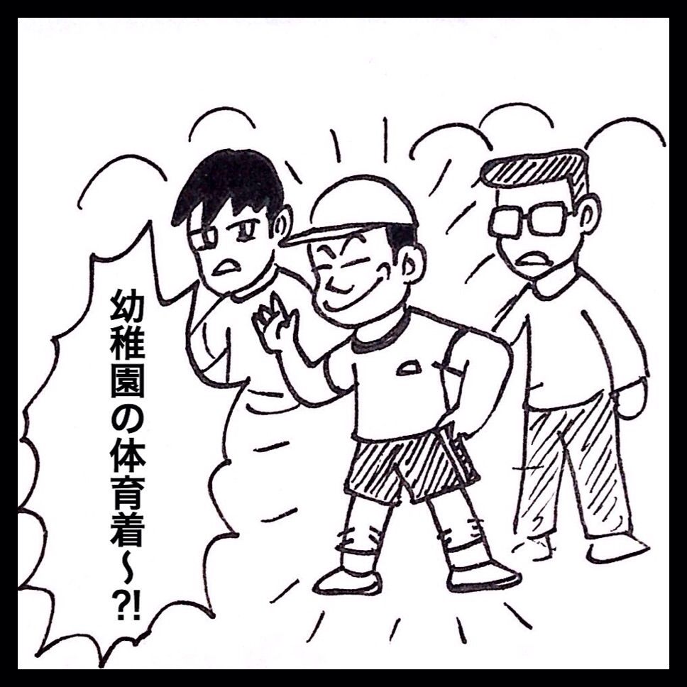 なんと保護者の1人が幼稚園の体育着を着て立っていました!