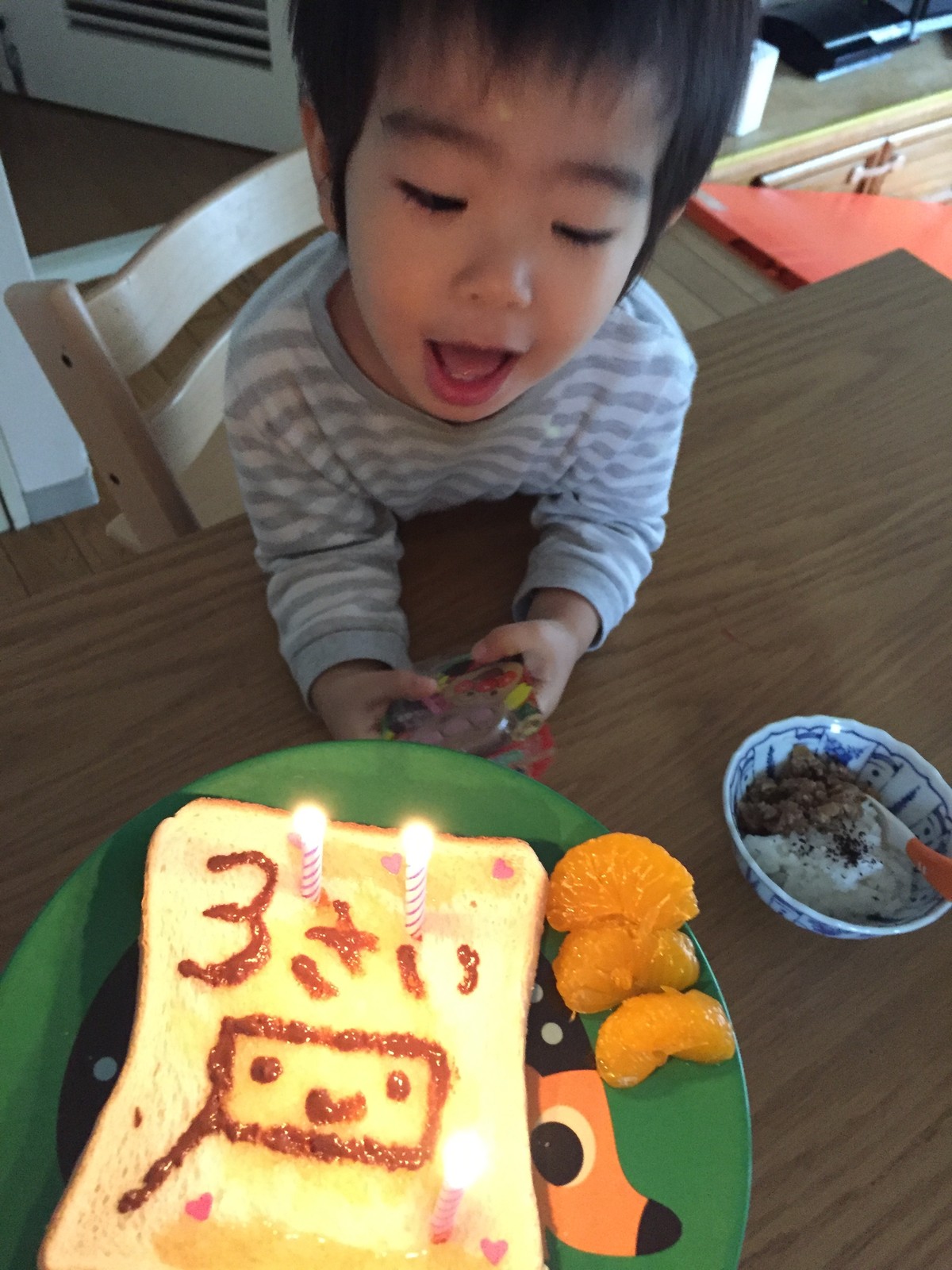 さく、3歳になった朝。