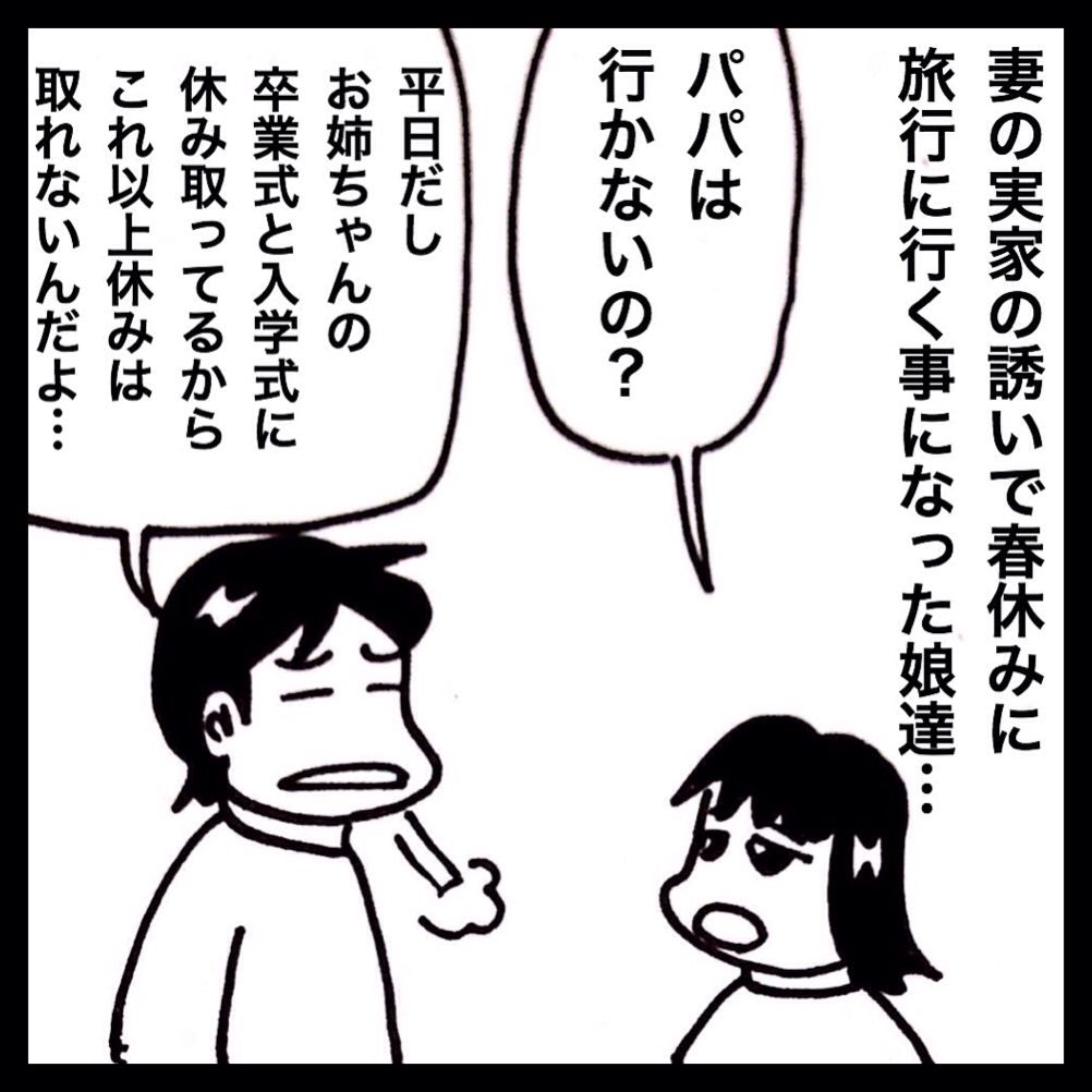 僕は長女の卒業式と入学式に有休を取っているので、これ以上はさすがに取れずお留守番…