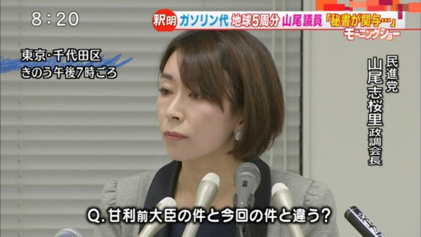 「購入した事実はない」と説明しました。そして、山尾氏によりますと、事務所の秘書が、捨てられていたレシートを利用してこのガソリン代を請求していた可能性があるなどと説明しています。
