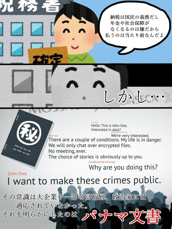 パナマ文書にのってるものの中でも、倫理的にも問題ないもの、違法じゃないが倫理的にマズイもの、違法なもの、色々あるだろ