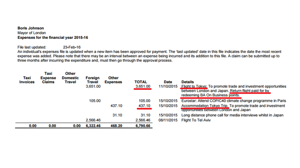 ロンドン市長はどれだけの経費を使って東京に来たのかを調べました。