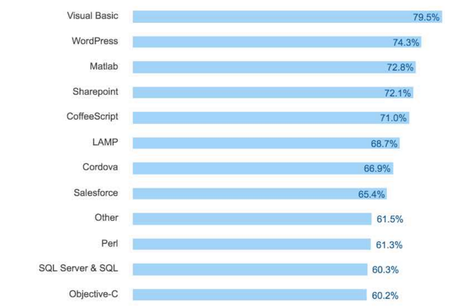 最も恐れられている技術として、Visual Basicが1位に選ばれた。