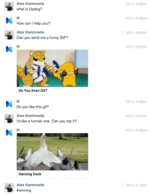 Mの背後には、人工知能と人間の「訓練士」がいる。Messengerチームを率いるマーカス氏はBuzzFeed Newsの取材に「人工知能が返信を自動生成する。訓練士はその答えにOKを出すか、複数ある答えから一つを選ぶか、全く違う答えを書くか、全く別の答えを出すかする」と話す。