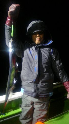 2月6日の夜タチウオ船は、前半~中盤は当たりが遠く辛い時間がありましたが、後半、食い活発で何とか皆さん20匹前後でした。
