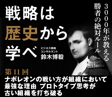 戦いの天才と言われる革命児ナポレオン。従来の常識を超える戦い方は、敵が動き始めた状態に勝機を見出すプロトタイプ思考が肝だった。現代のビジネスでも、考えるばかりでなかなか始められない旧式企業に、まず始めてから改善をスピーディーに行う新式企業が打ち勝つ逆転劇が生まれている。古い組織を打ち破るナポレオンの戦略思考を、新刊『戦略は歴史から学べ』から一部を抜粋して紹介する。